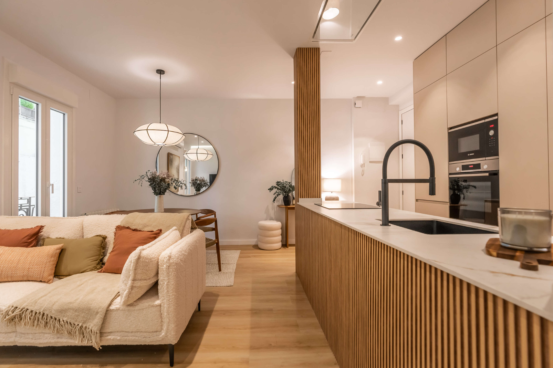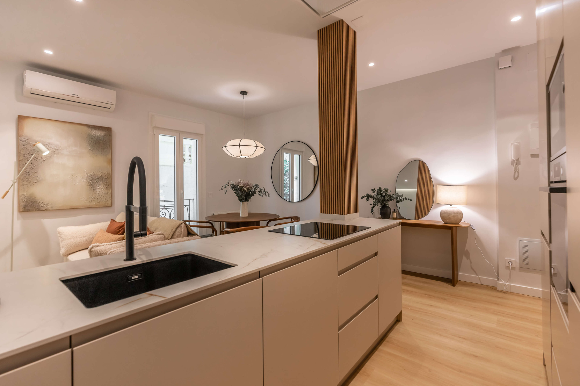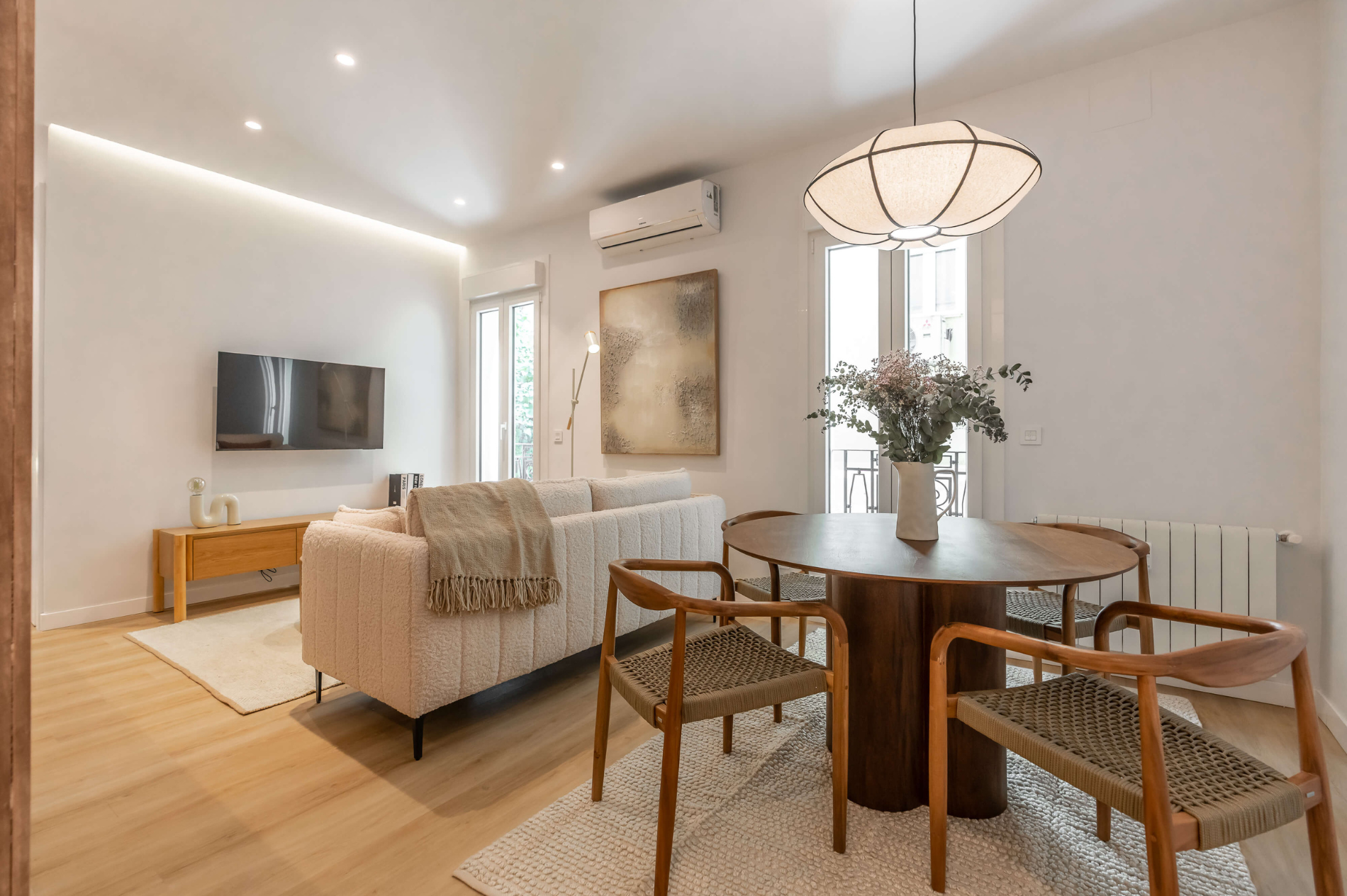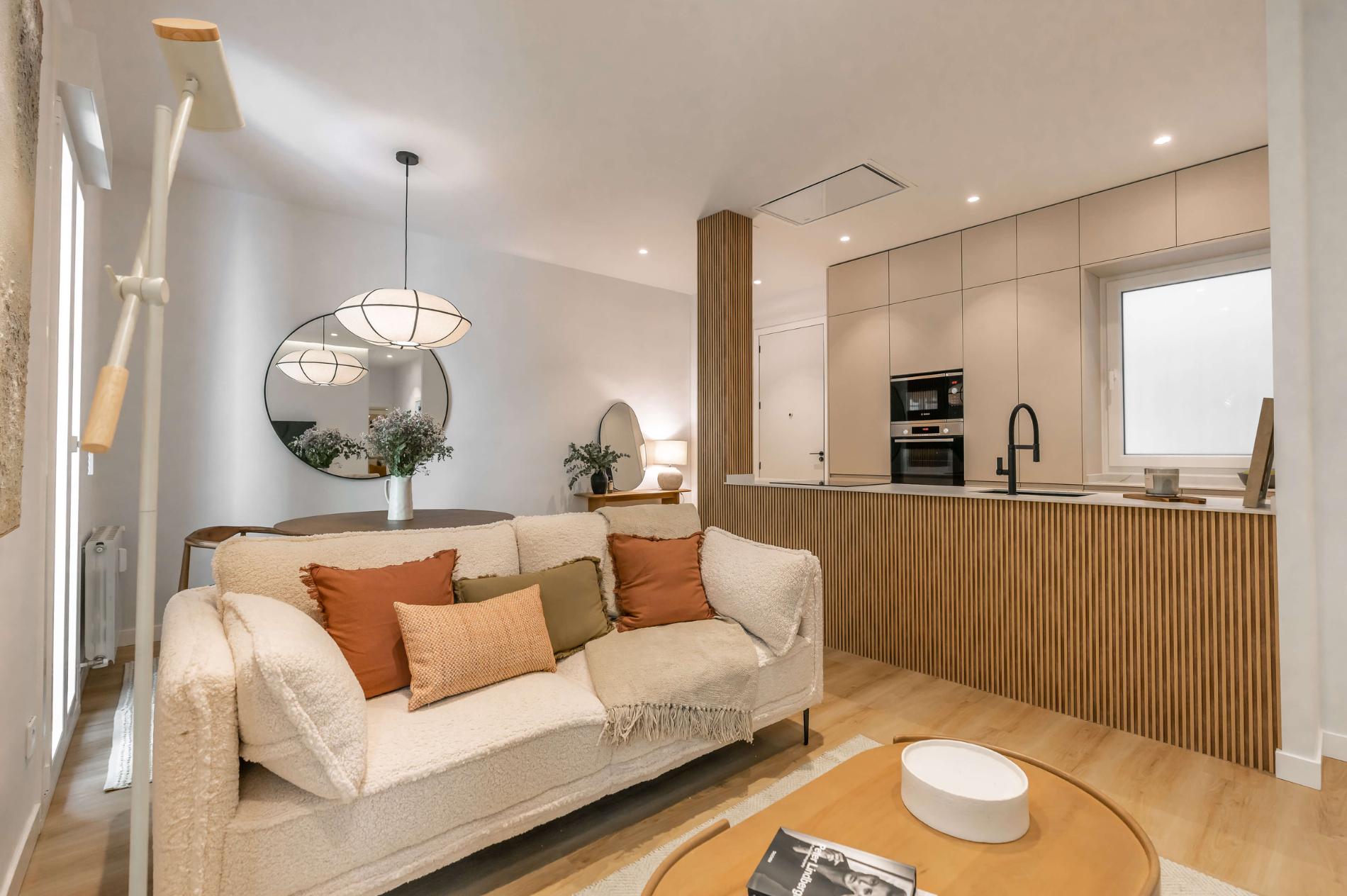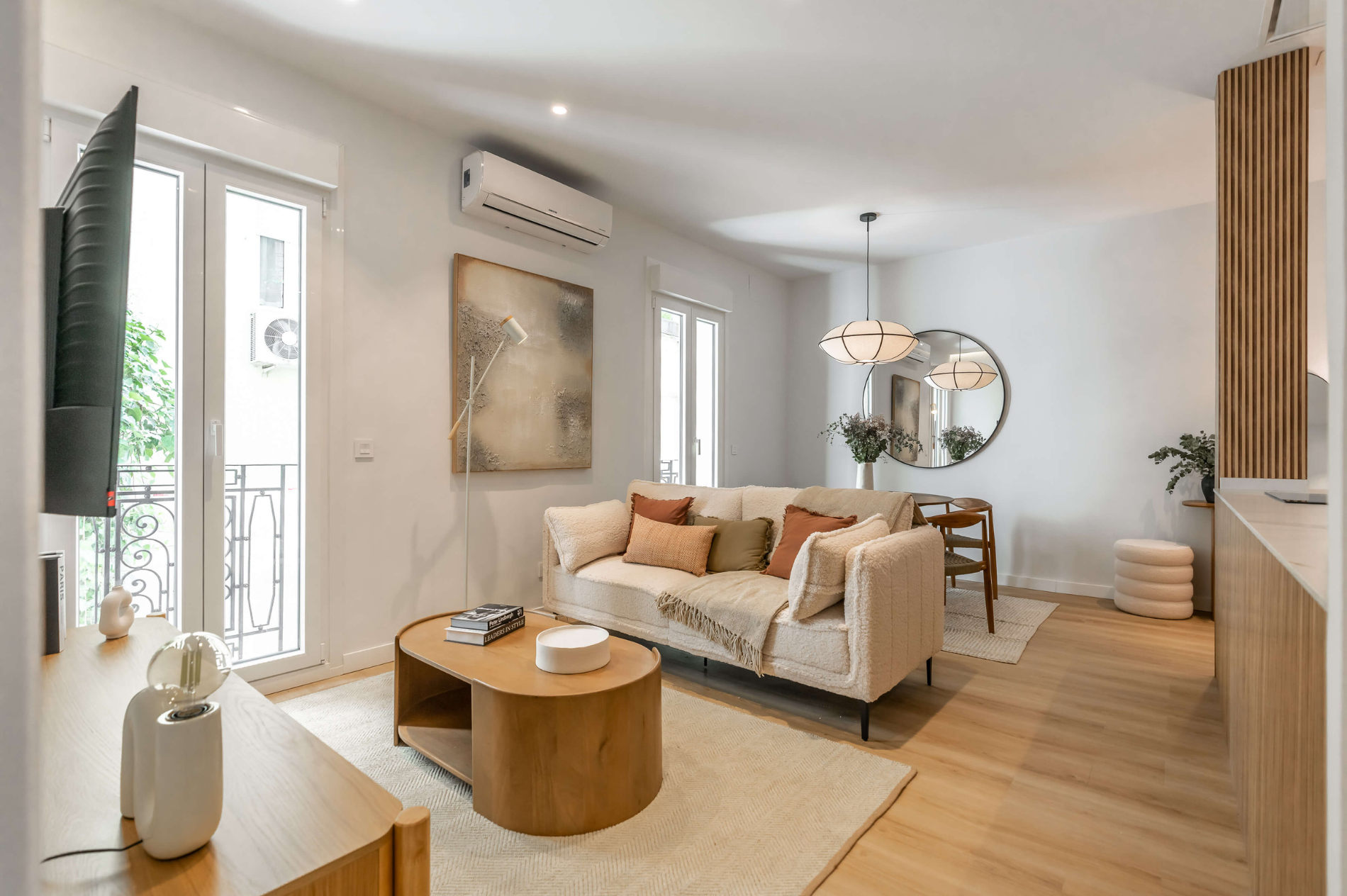Apartamento totalmente reformado y amueblado, decorado por interioristas y listo para entrar a vivir o invertir con alta demanda en alquiler. Destaca por su luz natural durante la mañana y por ofrecer una privacidad superior, siendo mucho más luminoso y tranquilo que un bajo convencional, gracias a sus tres balcones abiertos a un espacio entre edificios. Aunque figura como planta baja, su posición elevada ofrece una clara sensación de primera planta. Ubicado en finca clásica con portero y ascensores, en pleno Goya.