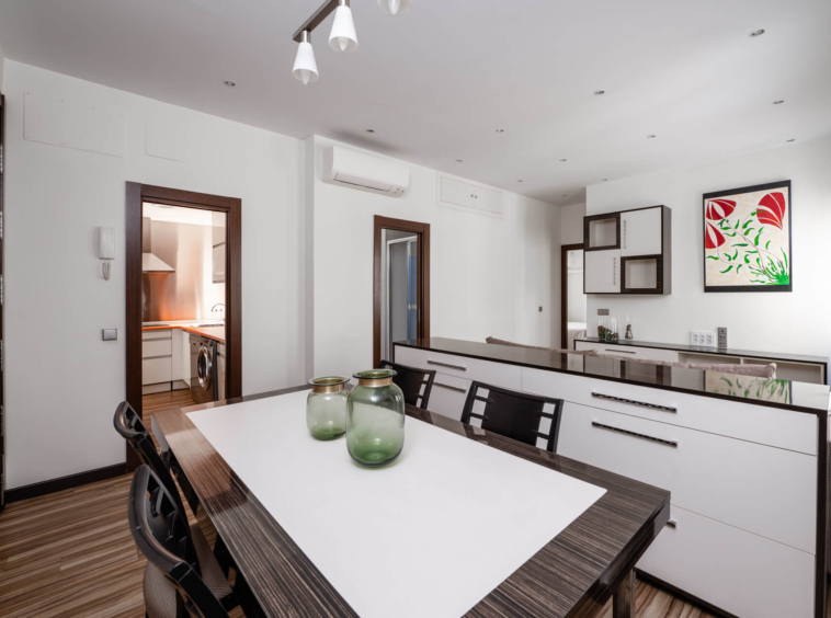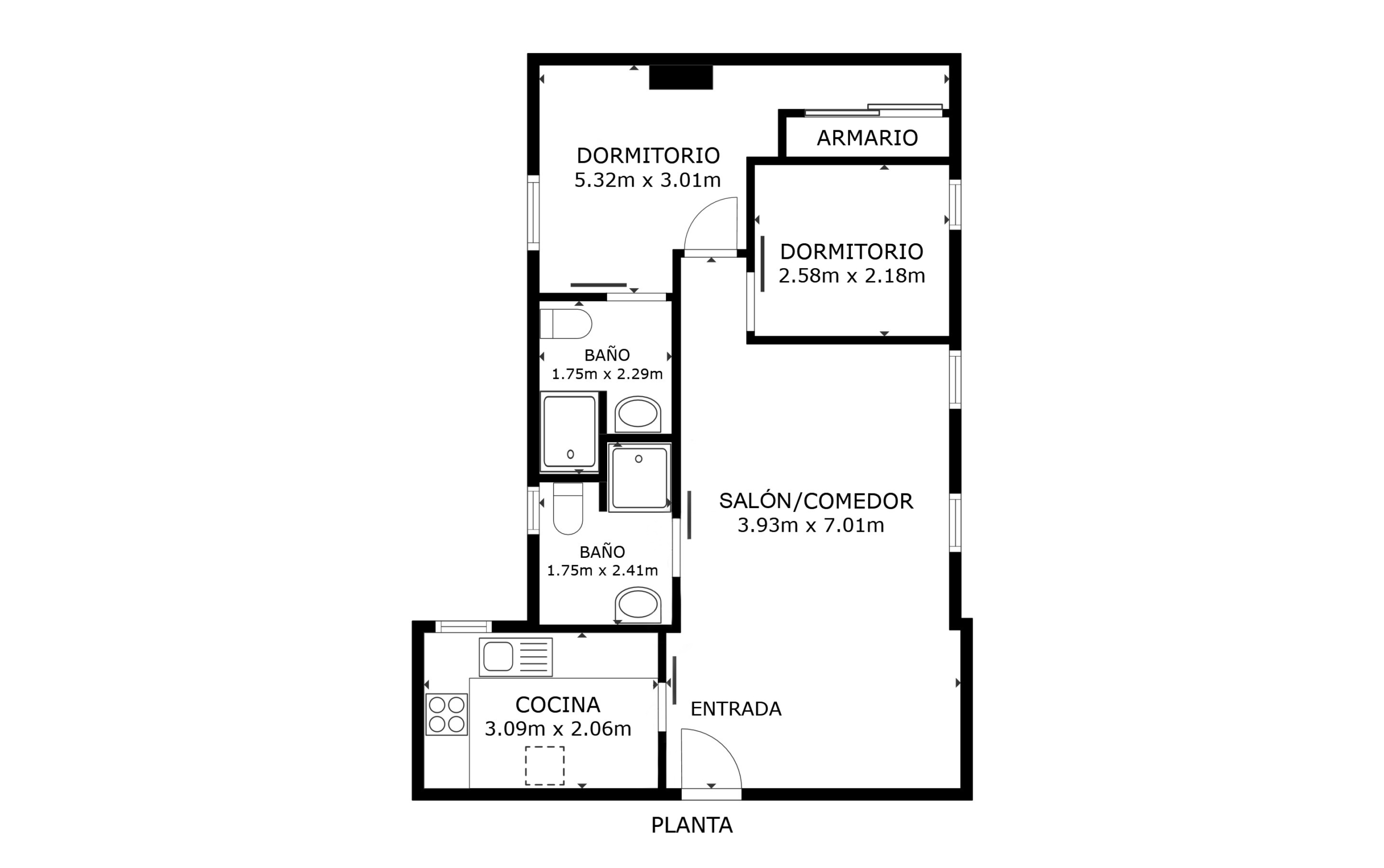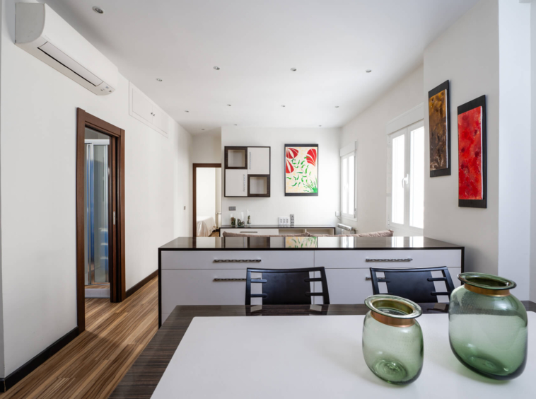 El apartamento cuenta con una distribución que incluye dos dormitorios y dos baños completos, uno de ellos en suite. El inmueble dispone de aire acondicionado y calefacción central en todas las estancias, proporcionando un confort ideal durante todo el año.