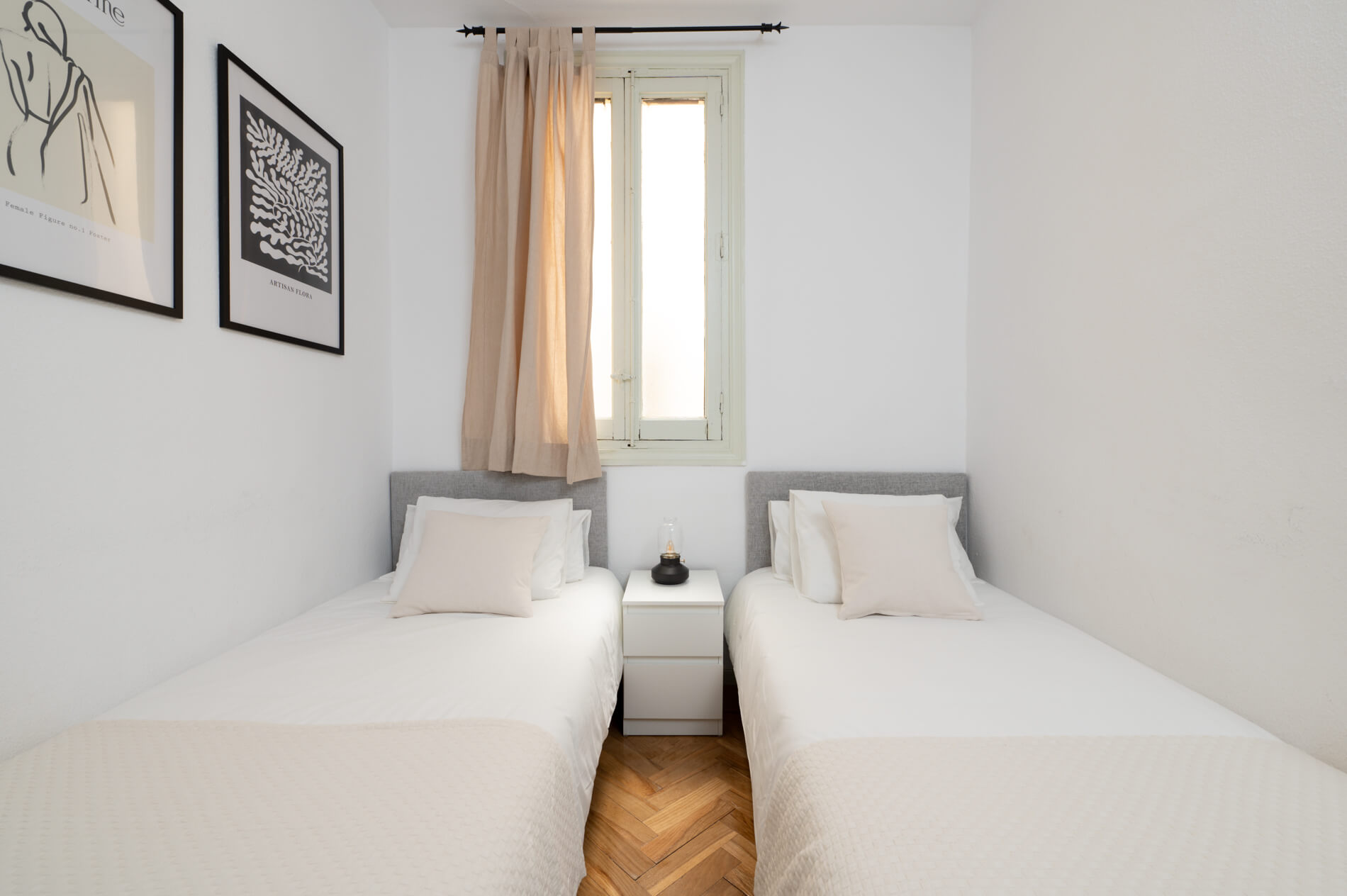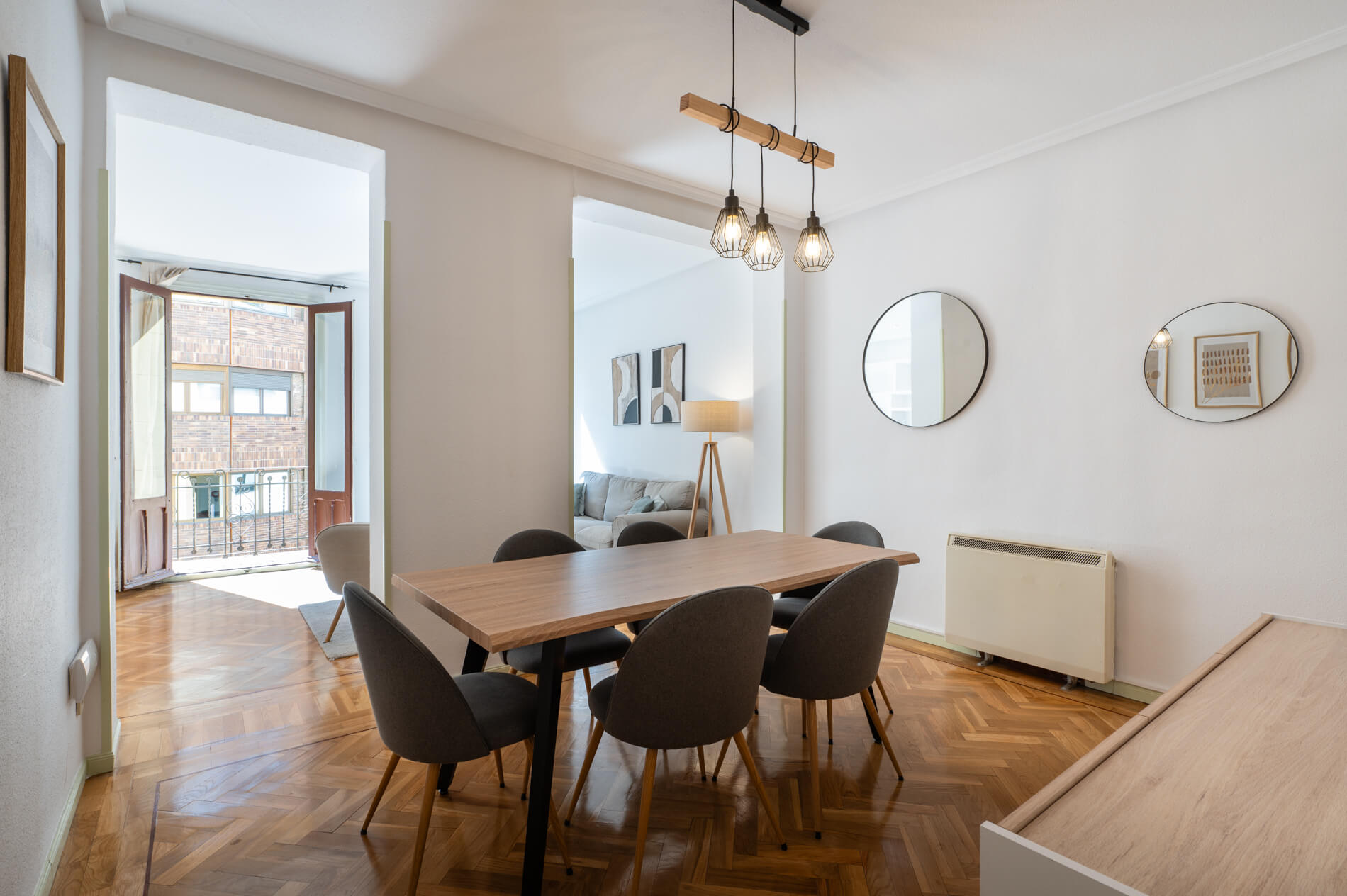 Situado en la cuarta planta de un edificio clásico con ascensor y portero físico, esta propiedad destaca por su luz natural y su encanto exterior, con dos balcones que ofrecen una preciosa vista a los elegantes edificios clásicos de la zona, aportando un ambiente acogedor.